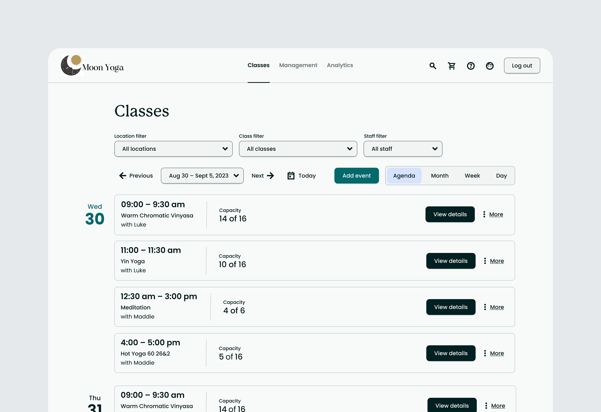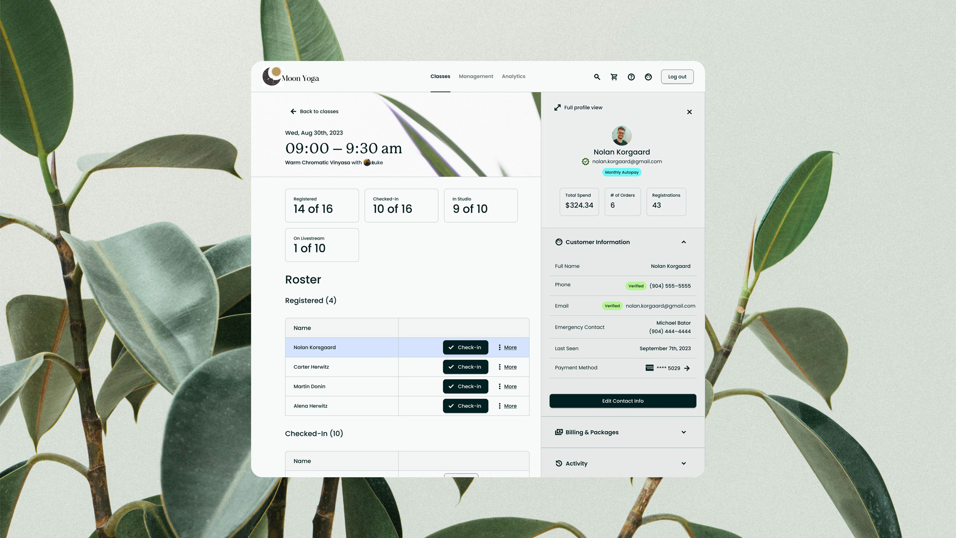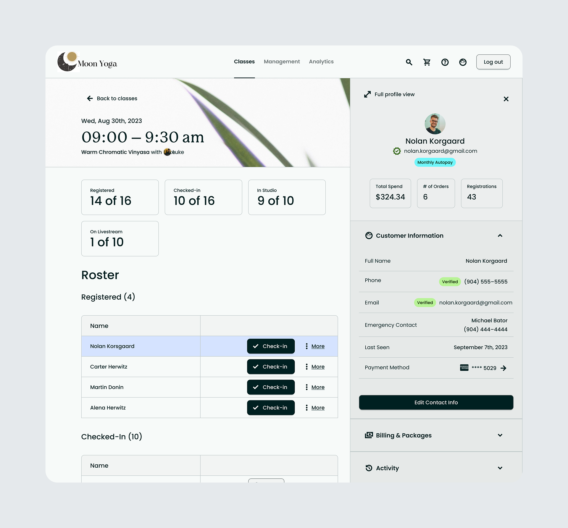 “I’m a front desk manager at a mid-sized yoga studio. My job is to keep classes running smoothly, check members in, and process sales. But the system we use makes everything take longer—especially when we’re busy. It’s hard to find class details quickly, and signing people up for memberships feels like it takes too many clicks.”